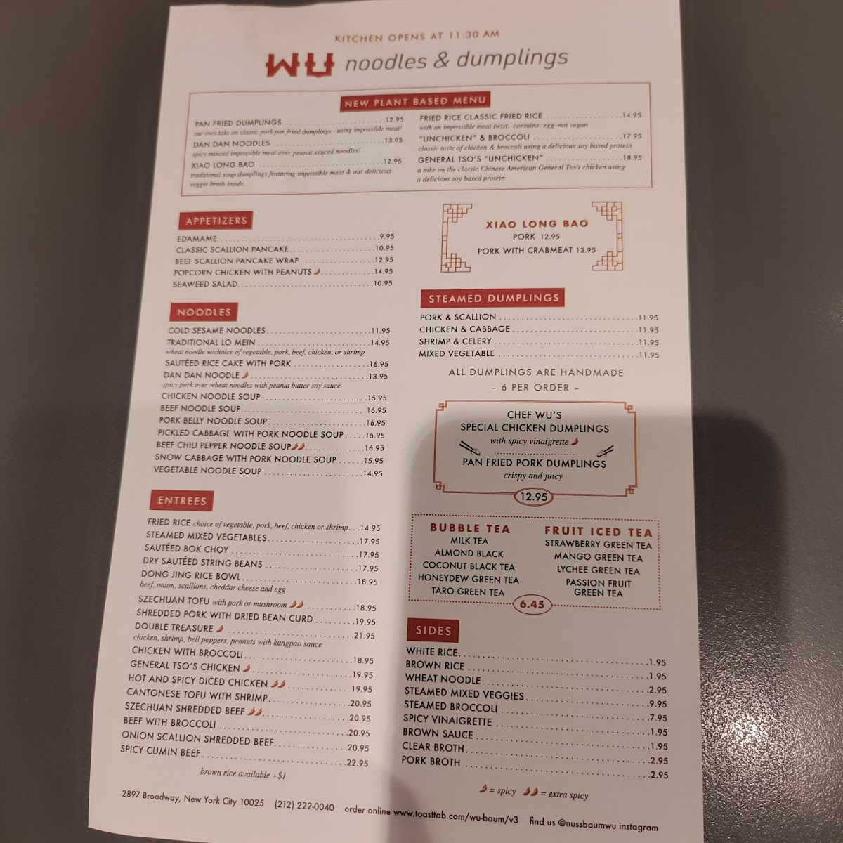 Welcome to Wu and Nussbaum, a unique culinary haven located at 2897 Broadway, New York, NY. Here, the essence of Asian-Jewish fusion comes to life, inviting you to explore a diverse menu that delights and surprises. Highlighting their Chinese offerings, you can't miss the signature Dan Dan Noodles with spicy minced pork—a personal favorite of Chef Wu, and the traditional Lo Mein which offers a delicious selection of proteins, allowing you to customize your dish.
